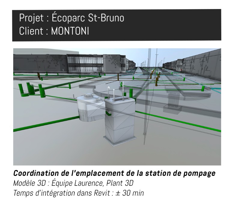Équipe Laurence, une firme innovante qui se spécialise en modélisation Civil 3D depuis 2007, a collaboré avec Archi Aid pour créer un pont numérique entre les données civiles et les autres données BIM du projet. Cette collaboration a permis un flux de travail fluide et une coordination optimale entre tous les intervenants.