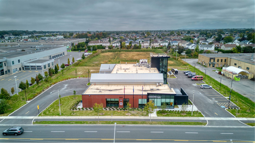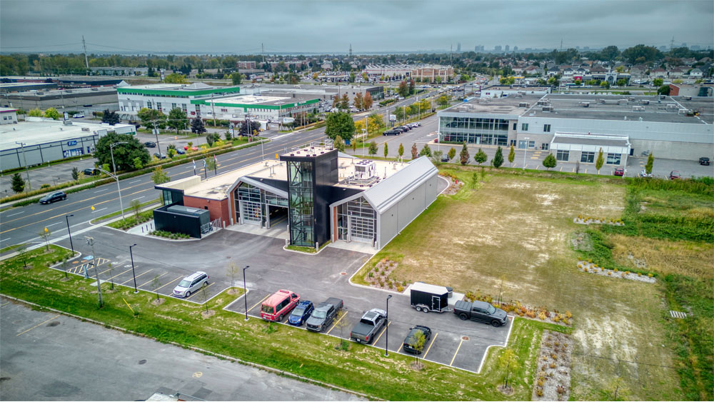 Dans le cadre du projet de construction d’une caserne d’incendie sur le boulevard Matte, près du boulevard Taschereau à Brossard, Équipe Laurence a été chargée de l’ingénierie civile en sous-traitance pour la firme Bouthillette Parizeau. La nouvelle caserne est constituée d’un garage, avec des baies de stationnement, d’une baie technique pour l’entretien des équipements et des habits de combat, de bureaux, vestiaires, douches, toilettes, salle d’exercices, salle de repos, salle de séjour, salle à manger avec cuisine et terrasse. Les travaux incluent l’aménagement du stationnement, les fondations de la chaussée (1500 m³), bordures béton (310 m.lin), dalle pour génératrice, revêtement en enrobé bitumineux (1900 m²), clôture galvanisée, raccordement de l’aqueduc et conduite au pourtour du terrain pour desservir une borne fontaine, raccordement de l’égout sanitaire au bâtiment, prolongement du réseau d’égout pluvial incluant 1 bassin de rétention, puisard, régulateur de débit, unité de traitement pour l’enlèvement des matières en suspension, mise aux normes, éclairage extérieur.