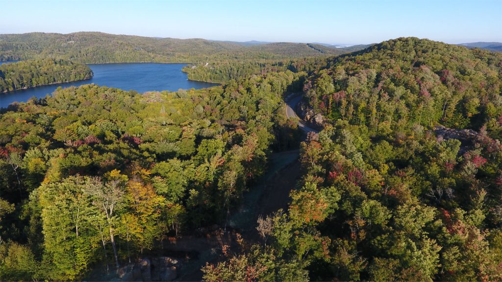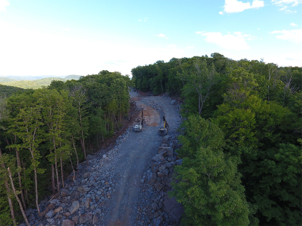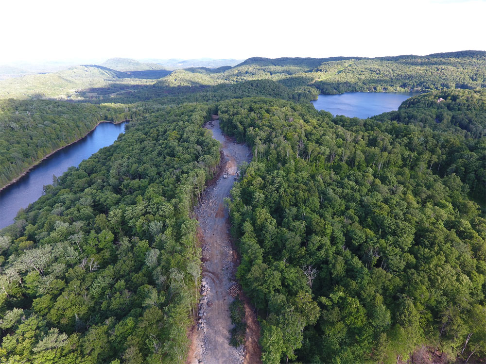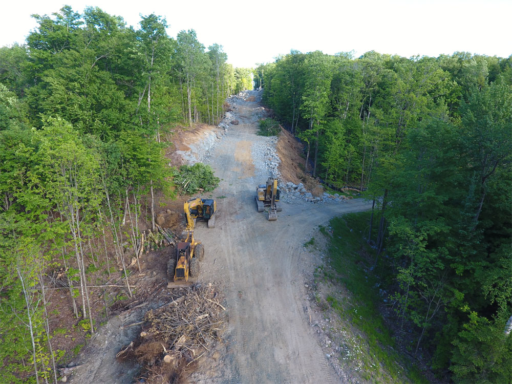 La grande présence de roc et la topographie particulière des lieux, avec ses grandes sections très escarpées, représentaient des défis importants et ajoutaient au niveau de complexité des travaux. De plus, la proximité et présence de plusieurs lacs et cours d’eau nous menaient à porter un souci particulier à la protection de l’environnement.