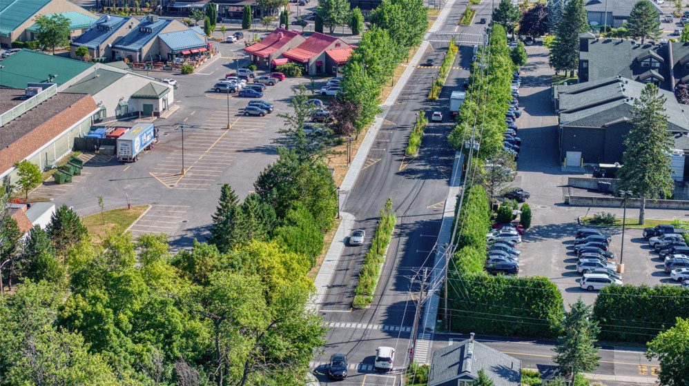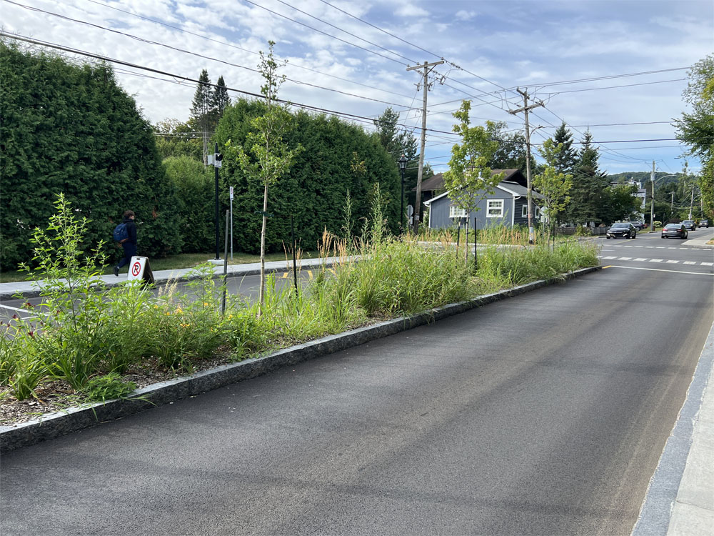 Grâce à une approche intégrée et durable, Équipe Laurence a proposé des solutions qui réduisent la pression sur le réseau pluvial, favorisent l’infiltration des eaux et diminuent les îlots de chaleur. L’étude a été saluée par la ville, qui a confié à l’équipe la conception et les plans pour les travaux. Le projet améliore la résilience urbaine tout en mettant en valeur le cadre naturel du secteur.